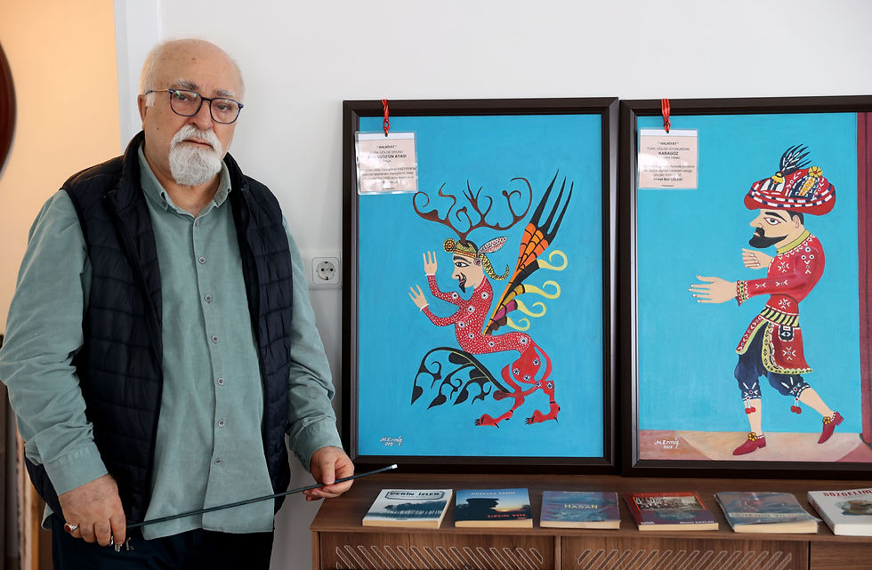 Karagöz'ün hayatını konu alan bir kitap yazan Ermiş, emekli olduktan sonra evinin bir odasını atölyeye dönüştürerek yaklaşık 20 yıldır gölge oyunu karakterlerini resmediyor.